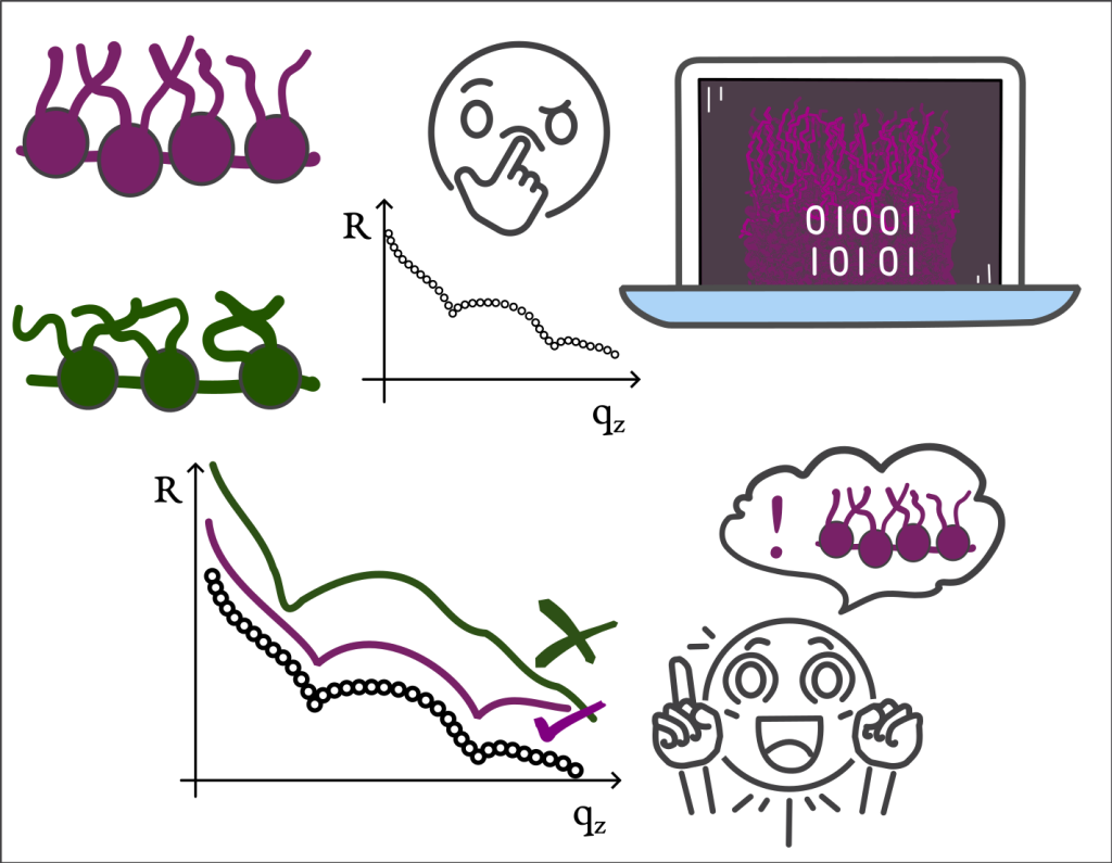 In the first paper, published in Colloids and Surfaces A: Physicochemical and Engineering Aspects, Markus and his team propose a method to correct inconsistencies in lipid monolayer experiments. They combine X-ray reflectometry with molecular simulations to determine accurate molecular areas. This correction improves the reliability of surface-pressure–area isotherms. It was successfully applied to several lipid types, enhancing reproducibility.